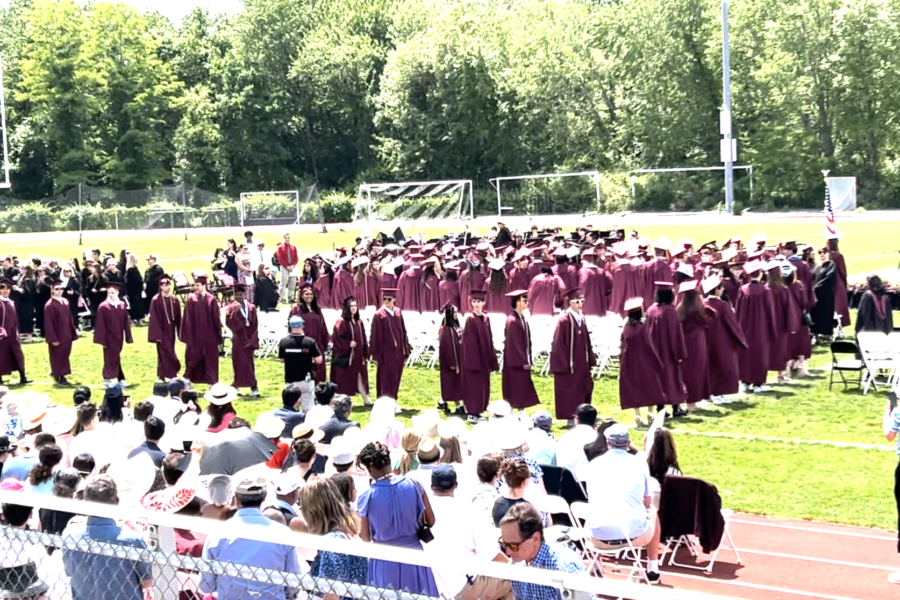 The Class of 2024 marches onto the athletic field for the graduation ceremony at Sharon…